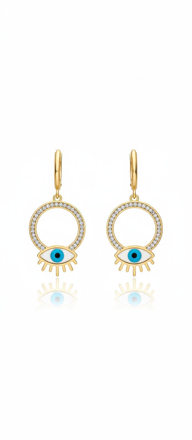 Dual-Charm Drop: A stylish tiered design with two linked Evil Eye charms and a simple top hoop.